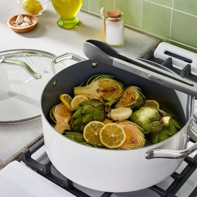 Every well-stocked kitchen needs the 12-Inch Stainless Steel Tongs with Silicone Tip from Figmint . Made from stainless steel and built to last, this versatile utensil features an easy-grip handle and locks into place when not in use. The silicone material is stick resistant and heat resistant and doesn t scratch metal. The modern dark gray finish will add a modern touch to your kitchen, and you can simply toss the tongs in the dishwasher for easy cleanup.Figmint : Mixing up a taste of adventure everyday. Highlights: 12in stainless steel tongs with silicone tip in dark gray Tongs lock into place for easy use Stainless steel construction is built to last Easy-grip handle is comfortable to hold and maneuver Silicone material provides stick resistance and doesn t scratch metal Safe to use on all cooking surfaces Heat resistant to 450 degrees F Dishwasher safe Specifications: Dimensions (Overall): 13.52 Inches (L), 1.56 Inches (W), 1.61 Inches thick Weight: .36 Pounds Material: TPR (Thermoplastic Rubber), Silicone, Stainless Steel Care & Cleaning: Dishwasher-Safe