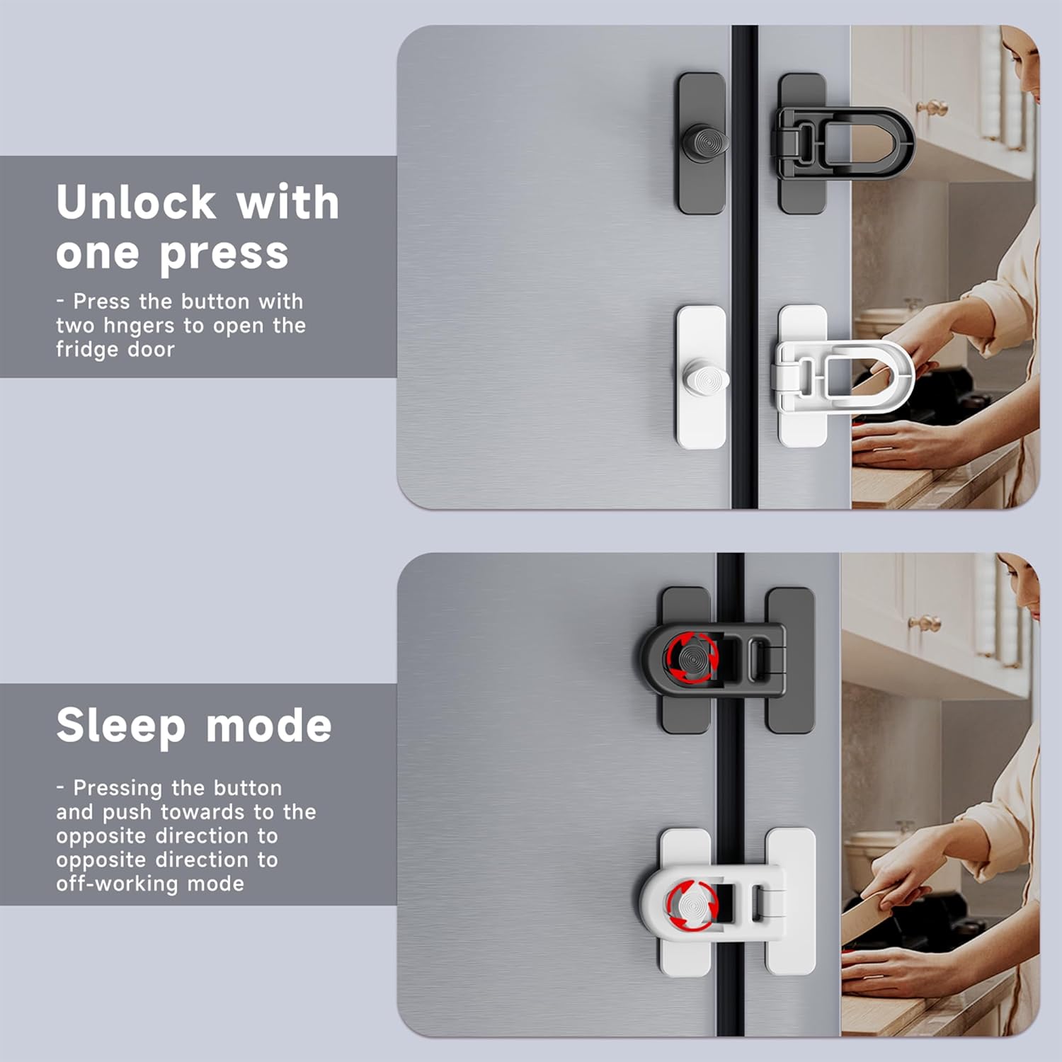 2 Pack Child Proof Refrigerator Lock with Sticky Adhesive Pads - Black