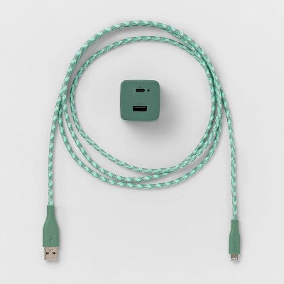 2-Port Wall Charger 15W USB-C & 5W USB-A (with 6' Lightning to USB-A Cable) - heyday Evergreen *Packaging Damaged/Opened*