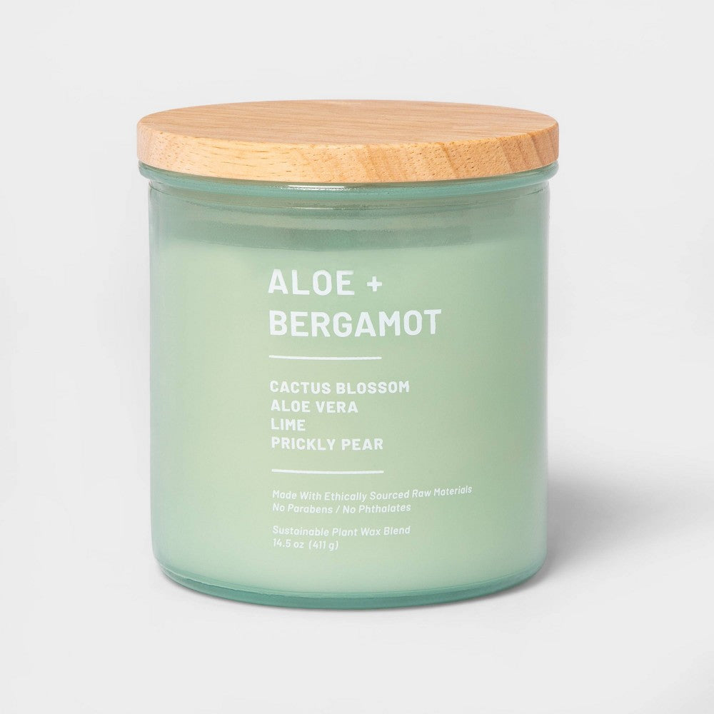 Lift your spirits with the refreshing, pleasant fragrance of the Tinted Glass Aloe and Bergamot Jar Candle from Threshold . This scented candle infuses your home with a blend of aloe and bergamot scents that create an inviting ambience you re sure to appreciate. While the gentle light flickers and sends shadows across the walls, the glass exterior and round lid add to the overall vibe. Easy to display on a mantel or a side table, this scented candle is a must-have essential you ll want to keep handy. Threshold : Looks like home, feels like you.