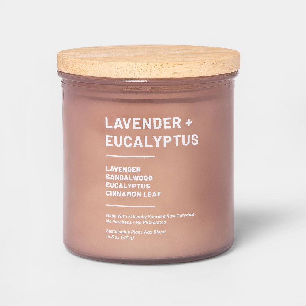 Lift your spirits with the refreshing, pleasant fragrance of the Tinted Glass Lavender and Eucalyptus Jar Candle from Threshold . This scented candle infuses your home with a blend of lavender and eucalyptus scents that create an inviting ambience you re sure to appreciate. While the gentle light flickers and sends shadows across the walls, the glass exterior and round lid add to the overall vibe. Easy to display on a mantel or a side table, this scented candle is a must-have essential you ll want to keep handy. Threshold : Looks like home, feels like you.