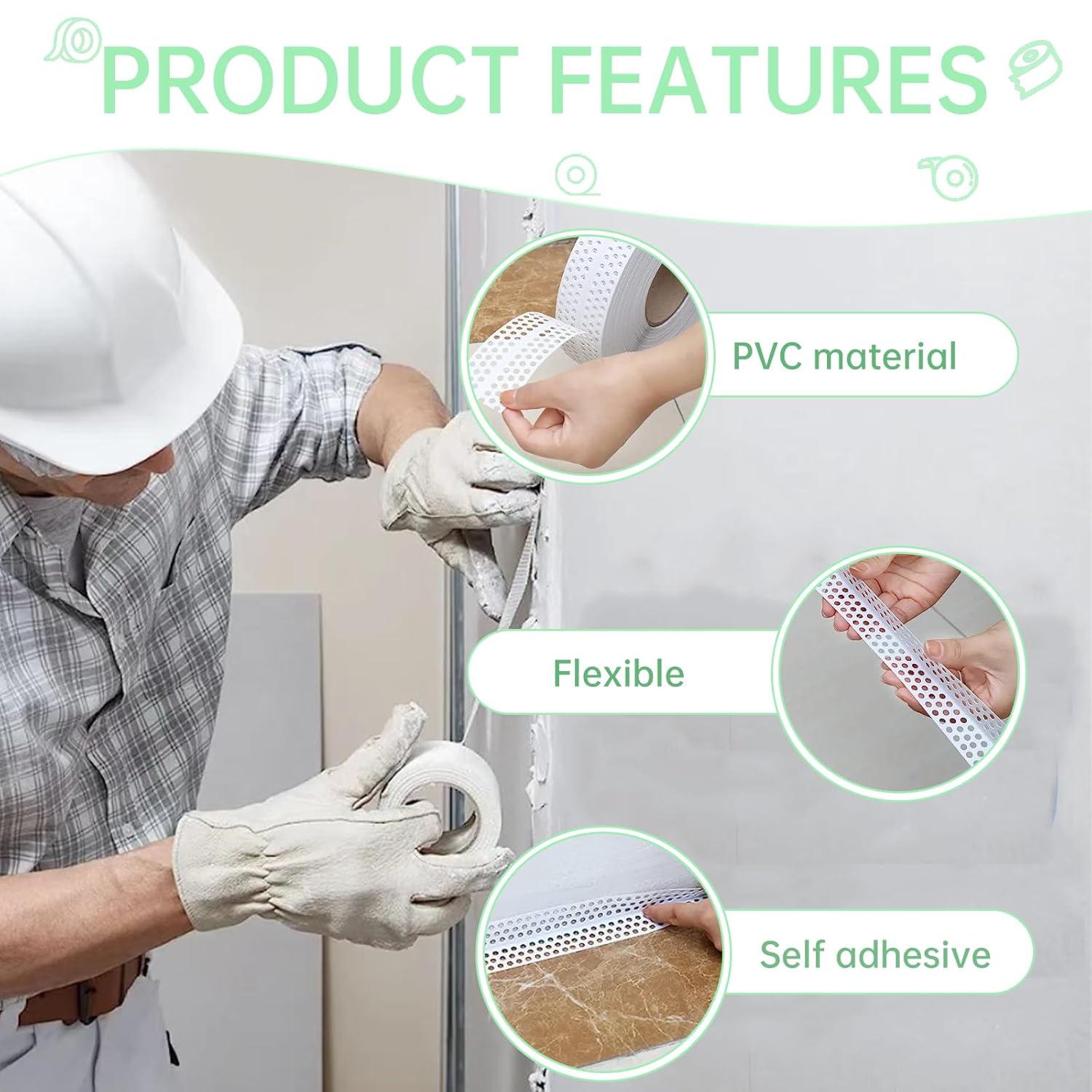 Durable and Strong: Made from high-quality materials, this corner tape provides excellent protection against cracks and damage, ensuring long-lasting performance Versatile Application: Suitable for both inside and outside corners, this tape is ideal for drywall protection and finishing, creating clean and straight edges Easy to Use: The self-adhesive feature allows for easy application, reducing the need for additional tools and simplifying the installation process Self-Adhesive Design: Easy to apply without nails or screws, ensuring a quick and efficient installation process Professional Finish: Achieves a smooth, straight, and professional finish, perfect for DIY projects and professional installations