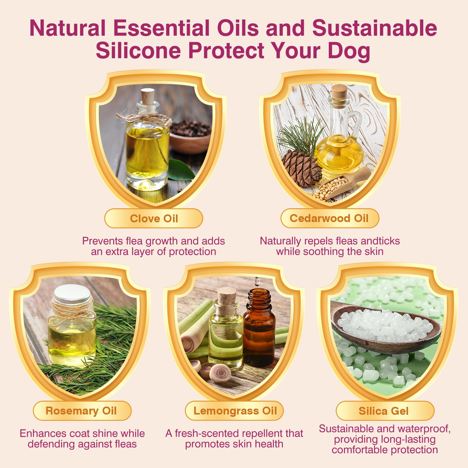 Keep your furry friend safe and comfortable with our natural flea collar for dogs, expertly crafted with essential oils known for their pest-repelling properties. This collar helps repel fleas, ticks, and other pests, providing your dog with effective protection. It contains Cedarwood, Lemongrass, Rosemary, and Clove Oil, offering a natural, chemical-free solution to keep your pet protected.