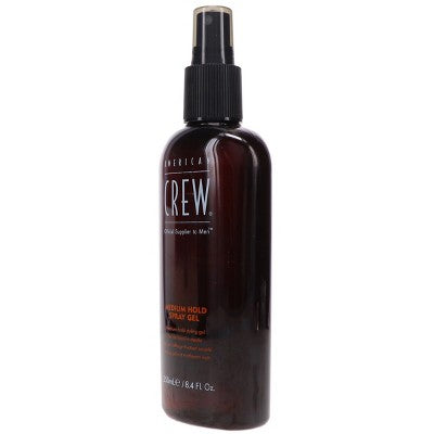 If you need a hair product that will hold up against all elements, including UV ray, then you'll want to try American Crew Medium Hold Spray Gel in 8.45 fl oz. This spray is formulated with sunscreen to take on the sun's harsh UV damage and keep your scalp from getting burnt while you're outdoors. This gel is alcohol-free and will lock in moisture, so you won't have to worry about it drying out or damaging your hair and scalp. Enriched with Quillaja, Ginseng and, Aloe Vera and Sage, this gel will leave your hair with a natural look and feel and medium hold that will last all day. To use, simply spray on wet or dry hair and style as usual. If you want a stronger hold, you can build on the spray for a greater hold without any sticky residue that washes out easily in the shower. When you want the best men's hair styling products on the market, you won't go wrong with American Crew. Highlights: Alcohol-free and will not dry out hair or scalp Quillaja, Ginseng, and Aloe Vera help to leave a natural look and feel Medium hold lasts all day Use every day to improve the texture of your locks and give them a radiant appearance Specifications: Hair Type: All Hair Types Product Form: Spray Beauty Purpose: Hair Styling Net weight: 8.4 fl oz (us)