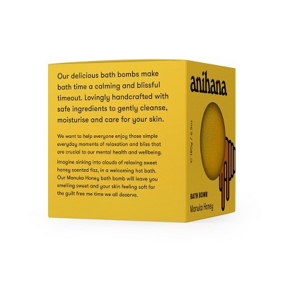 Bring an element of spa-like luxury to your bath experience with anihana Hydrating Bath Bomb Melts. Using safe, high-quality ingredients and handcrafted with care, these bath bombs are both gentle and nourishing for the skin. Made with coconut oil for extra moisture and the relaxing aroma of honey, your bath will be calming and your skin will feel soft and cared for. Allow the bath bombs to fizz and meltaway tension and stress. Once the bath bomb dissolves you will be left with a whipped coconut oil soap that you can use or leave to melt into the tub for extra indulgence. anihana Hydrating Bath Bomb Melts are free of parabens, SLS & sulphates and made of compostable packaging so you can enjoy high-quality and safe products that enhance your beauty experience while being gentle on you and the environment. Relax and enjoy some guilt free me time! Target Zero | Packaging contains compostable elements - Certified Home Compostable Cardboard Packaging.