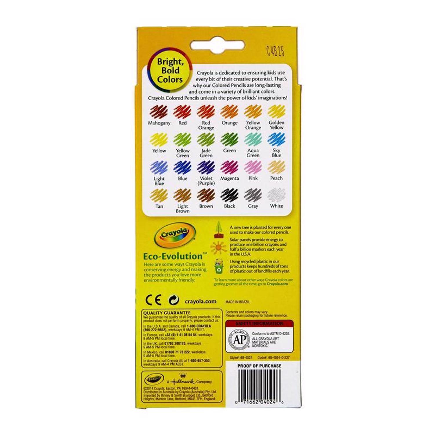 Great for adult coloring, art projects and crafts Crayola colored pencils are an essential creative tool for kids. This pack of 24 count pre sharpened colored pencils contains a range of vivid colors to inspire children's self expression and imagination. Made with thick, soft leads that won't break easily, the pencils create brightly colored lines that are perfect for school projects and creating detailed artwork.