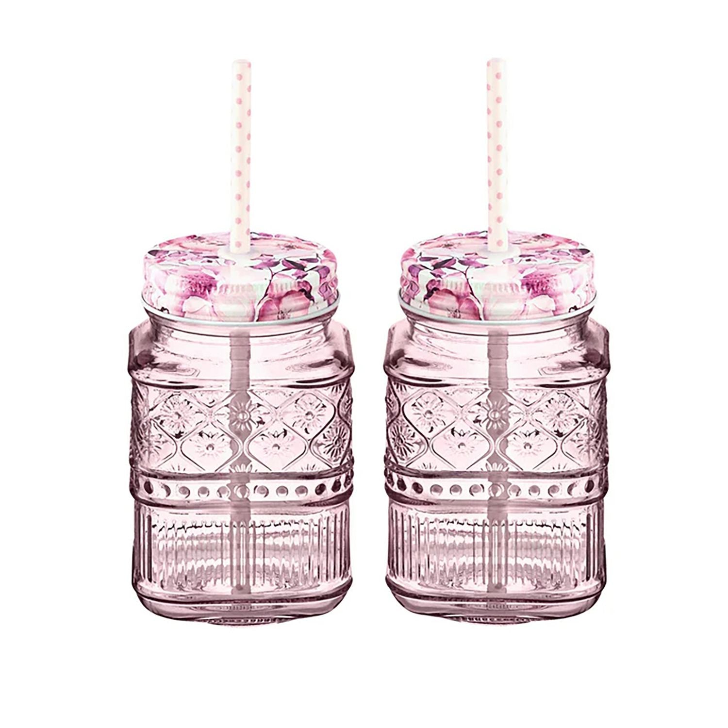 Crystal Claro Mason Jar Glasses Pink - Godinger Silver 16 oz 2 pk