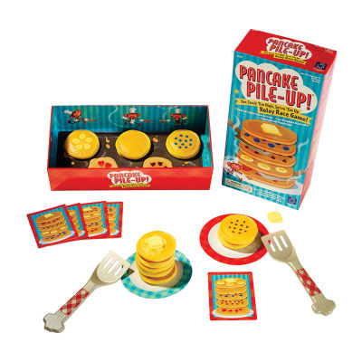 The stack 'em high, serve 'em up, educational insights pancake pile-up relay game! Order up! It's a busy day at the diner, so don't dilly-dally. Help your customers get just what they ordered by racing the other servers to the grill - relay style - and piling up pancakes in precisely the right order. The first player (or team) to find 'em, stack 'em and serve 'em up topped with a pat of butter, wins the pancake pile-up game! # Pieces In Set: 26Learning Skill: Motor SkillsMeasurements: 3 Height/Inches, 12 Length/Inches, 6 Width/InchesBase Material: 100% PlasticCare: Wipe CleanCountry of Origin: Imported WARNING: CHOKING HAZARD small parts. Not for children under 3 years.