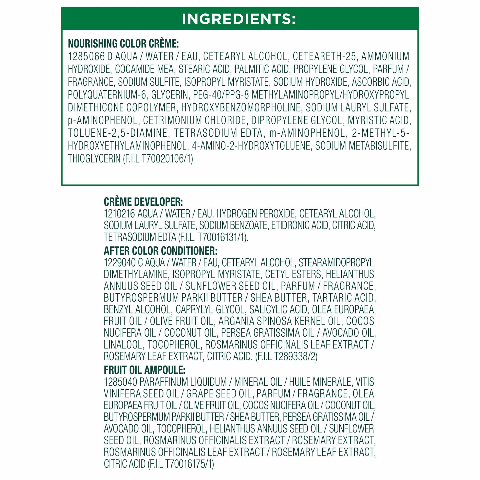 Garnier Nutrisse hair color creme nourishes while you color with avocado, olive, and shea oils. The nourishing color creme enriched with fruit oil concentrate, penetrates deep into hair fibers to nourish and condition your hair so it takes color better and holds it longer, root-to-tip. Garnier Nutrisse delivers rich, radiant, long-lasting hair color with 100% grey coverage. Permanent, nourishing hair color creme with three fruit oils- avocado, olive, and shea The only hair color creme with a separate ampoule of grape seed oil to start nourishing as you color Rich, radiant, long-lasting color with 100 percent grey coverage Available in 45 Nourishing Shades Benefit: Color Correcting Color: Clear Form: Cream / Lotion ProductType: Hair Color Quantity: Single Pack Garnier Nutrisse Nourishing Hair Color Creme, 53 Medium Golden Brown (Chestnut). Always read the hair color instructions insert in the box. Store between 50 and 80 F. Questions? Garnier Nutrisse has expert color consultants to help you. Call: 1-800-4GARNIER (1-800-442-7643). Garnier Nutrisse Nourishing Hair Color Creme, 53 Medium Golden Brown (Chestnut). Always read the hair color instructions insert in the box. Store between 50 and 80 F. Questions? Garnier Nutrisse has expert color consultants to help you. Call: 1-800-4GARNIER (1-800-442-7643).