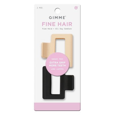 Meet Gimme Beauty s Square Claw Clips, made of strong, break-resistant (and recycled) plastic. Designed to hold more hair and eliminate breakage, these clips feature multiple inner layers of smaller teeth to keep your strands from sliding for a gentle, all-day hold. These small-but-mighty clips are designed for most hair lengths and all hair types but are a perfect fit for fine hair. Highlights: Strong, break-resistant plastic No slide, firm hold Ideal for fine hair Designed for most hair lengths and all hair types Made from 30% recycled plastic Specifications: Hair Type: All Hair Types, Normal Number of Pieces: 2 Dimensions (Overall): 2.8 Inches (H) x 6.5 Inches (W) x 1.4 Inches (D) Suggested Age: 13 Years and Up Material: 70% ABS (Acrylonitrile Butadiene Styrene), 30% Recycled ABS (Acrylonitrile Butadiene Styrene) Includes: Claw Clip Beauty Purpose: Securing Hair