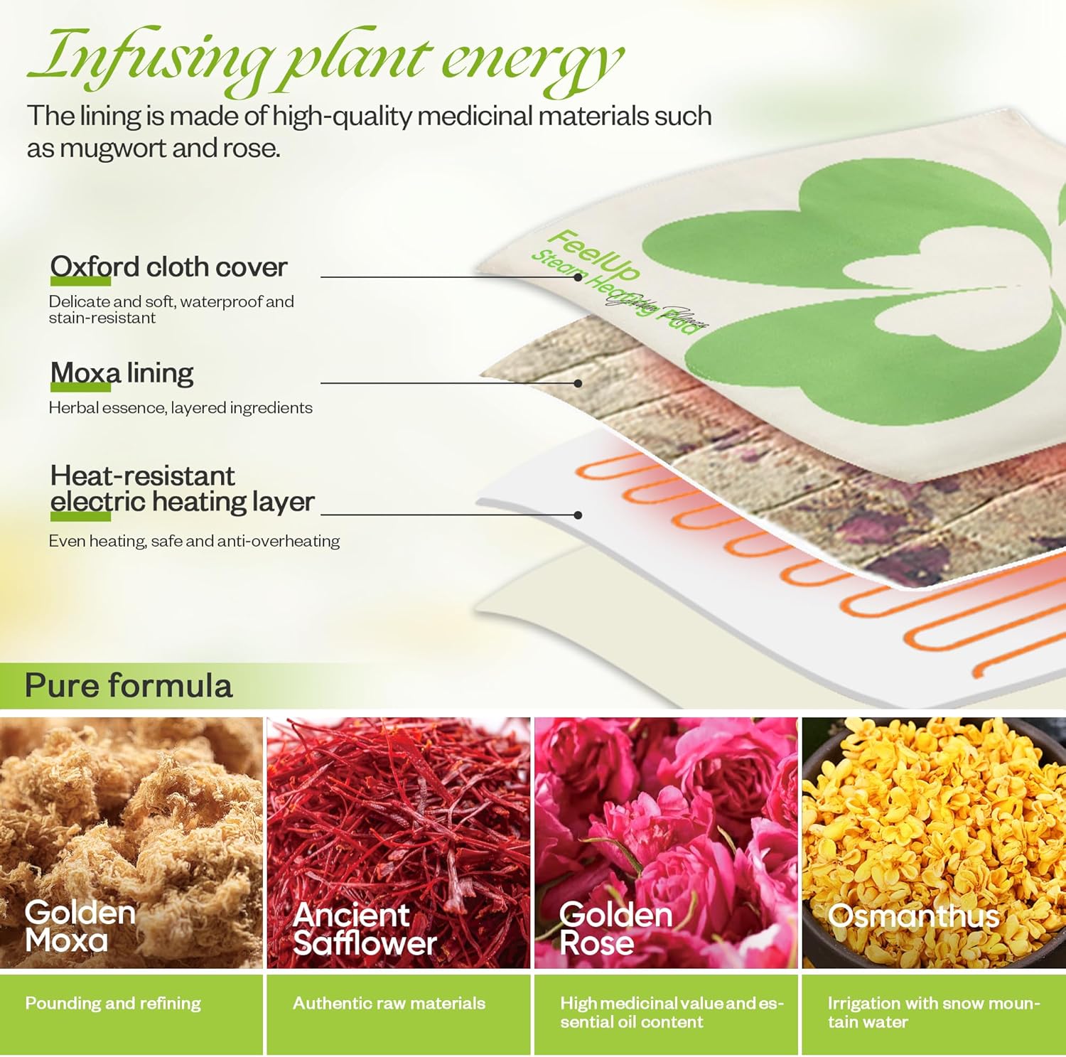 Versatile Use, Heat Anytime: Our body heating pad can heat your buttocks (primarily), and is also suitable for your lower back, abdomen, and feet. After a long day of sitting, it's your go-to for relieving fatigue, muscle pain, and stress, helping you unwind and relax.This heating pad for period cramps effectively relieves discomfort and pain, offering a natural and non-invasive solution for menstrual relief Relief from Various Discomforts: Feelup heating pad effectively alleviates various discomforts, helping you ease bodily pain, relieve stress, menstrual cramps, and dispel cold. Infused with high-quality medicinal like moxa, saffron, and rose, the chair pad's lining enhances the soothing effects while promoting blood circulation for a quicker return to comfort Moxibustion Heating Therapy: This innovative electric heating pad utilizes the ancient practice of moxibustion. It applies gentle, therapeutic heat to specific acupoints on your body. It deeply stimulates your meridians and delivers penetrating warmth, effectively accelerating relief and healing. Long-term use can enhance overall health. Important Note: This heating pad for hip emits a strong mugwort aroma, so please consider your sensitivity to scents before buy Smart Operation, Convenient Adjustment: Equipped with a digital LED screen remote control, you can easily adjust the heating levels. Offer 1-9 heat settings and 3 timer options, allowing you to fine the best heat intensity for optimal pain relief. It also features an automatic overheat shut-off for added safety, so you don t have to worry about forgetting to unplug it, making it a reliable and essential tool for daily wellness Ideal Health Gift: Delight your loved ones with this elegantly packaged heating pad designed for pain relief. Suitable for everyone, it provides soothing comfort for both men and women, ensuring an optimal experience for all. The removable and washable heat pad makes cleaning a breeze, allowing you to enjoy it without any hassle. This FSA HSA Approved heating pad is a thoughtful health gift for family, sharing warmth and happiness