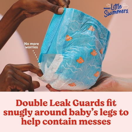 Huggies Little Swimmers Diapers: 12 baby swim diapers, size 3 (16-26 lbs) Designed for Swimming: Water diapers are made with unique materials that won't swell in water like regular diapers Fits Like Swimwear: Swim baby diapers have easy-open, refastenable sides for an adjustable fit and quick changes Double Leak Guards fit snugly around your baby's legs to help contain messes No Harsh Ingredients: Disposable swim diapers are free of fragrances, lotions, elemental chlorine bleaching and natural rubber latex Features Disney designs as cute as your baby Product and packaging may vary