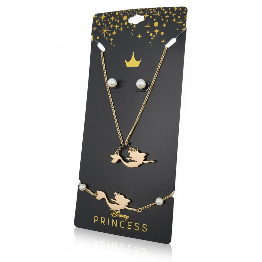Little Mermaid Necklace Earring Bracelet Set Bioworld Merch Ages 14+