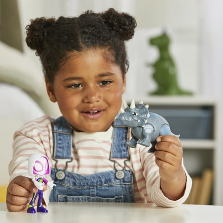 GO, DINO-WEBS, GO!: Just like in the show, kids ages 3 and up can imagine going on the latest dino adventures with Team Spidey and meet the mad scientist, Lizard, who turns Rhino into his dino form! INCLUDES POSEABLE 4-INCH HERO FIGURE: Each set includes a Ghost-Spider action figure complete with the latest Dino-Webs suit deco INCLUDES POSEABLE RHINO DINO: Each set also comes with a poseable baddie action figure, but in awesome dino form! MARVEL TOY SET FOR PRESCHOOLERS: Celebrate special occasions, big and small milestones, or just-because suprises with this Spidey and is Amazing Friends toy! THERE'S EVEN MORE DINO-WEBS TOYS: Look for more action figures and playsets for more webtacular pretend dino adventures. (Each sold separately. Subject to availiability.)