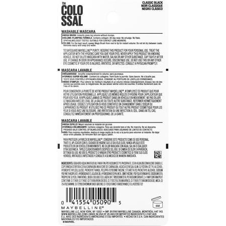 Maybelline Volume Express The Colossal Mascara, Classic Black Mega brush increases your lash volume by 9x with one stroke. Volume express colossal mascara by Maybelline features a clump-free formula. That contains collagen to plump up your lashes effortlessly. Contains collagen to plump up your lashes effortlessly Bold volume