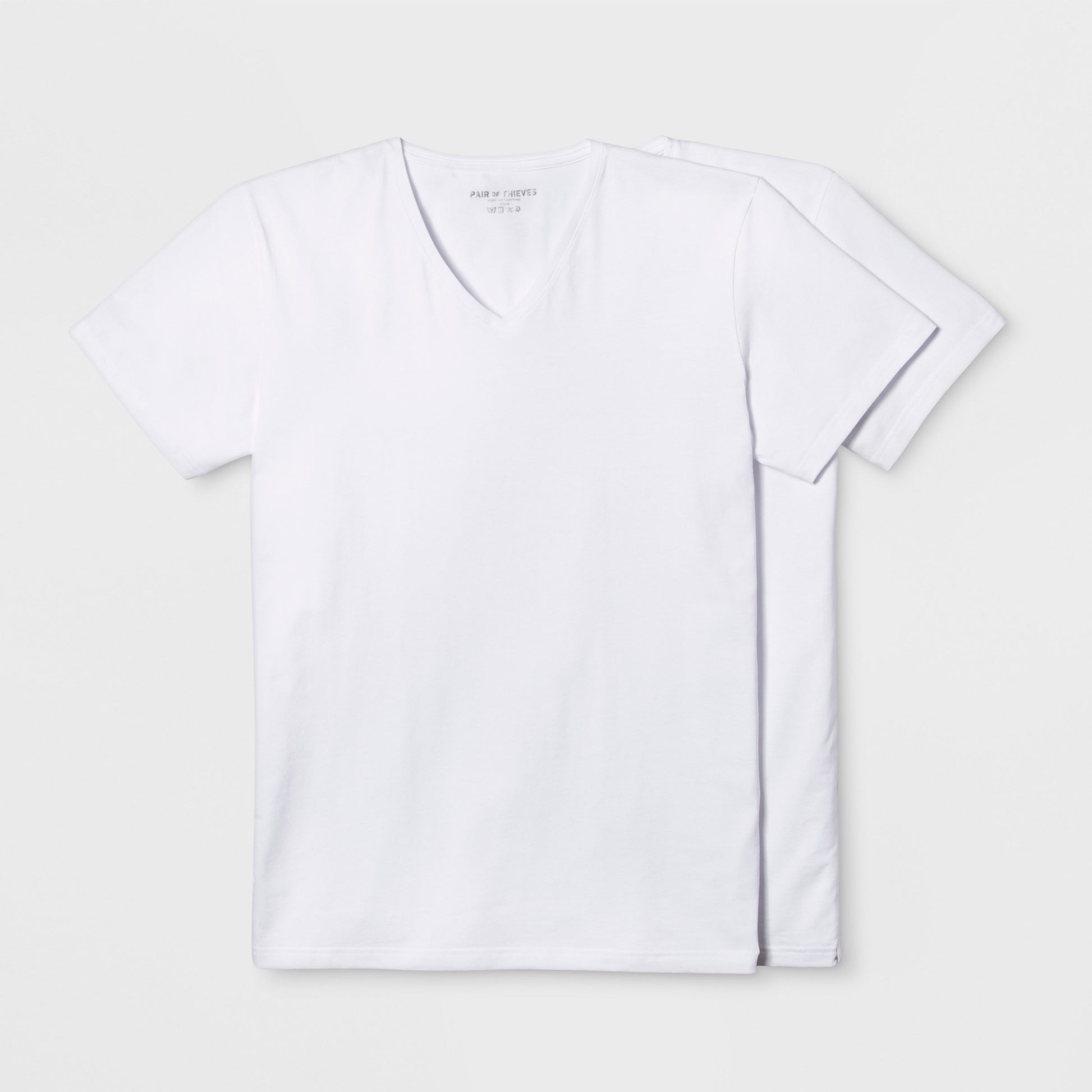 Men's XL Pair of Thieves 2pk V-Neck Undershirt - White XL: Midweight Jersey, Short Sleeve