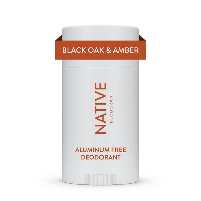 A couple swipes of this naturally derived Native Deodorant go a long way, delivering effective odor protection for up to 72 hours. Free of aluminum salts, parabens, and phthalates, this deodorant stick is thoughtfully made with less than 10 clean ingredients to fight unpleasant underarm smells, so you never have to worry. Native Deodorant includes baking soda to neutralize odors and shea butter for a smooth application. All of the ingredients work together to keep you smelling (and feeling) fresh. This clean deodorant isn't greasy or sticky, and feels dry when applying. Formulated for men and women, this award-winning formula is strong enough to work on anyone's pits, period.Native: Clean. Simple. Effective. Like all Native products, this deodorant stick provides a delightful personal care experience that really works. Complete your self-care routine with Native's full range of products including hair care, body wash, and moisturizing lotion. Highlights: 72-hour odor protection. Effectively controls odor for up to 72 hours Aluminum-Free. Free of aluminum salts, parabens, and phthalates No Residue. Odor Protection without leaving behind white marks Thoughtfully made. Formulated with clean, naturally derived ingredients Black Oak & Amber Scent: Warm woodsy notes with amber and lime that are as comforting as a campfire Cruelty-free and vegan. Never tested on animals and no animal-derived ingredients Over 150,000 5-star reviews. A lot of happy Native customers with fresh-smelling pits Specifications: Scent: Scented Health Facts: Animal By-Product-Free, Paraben-Free, Phthalate-Free, Artificial Color-Free, Vegan, Contains Naturally Derived Ingredients, Sulfate-Free, Aluminum-Free Product Form: Solid Sustainability Claims: Not Tested on Animals, Cruelty-Free Package Quantity: 1 Recommended Skin Type: Normal Net weight: 2.65 Ounces Features: No Residue, Natural