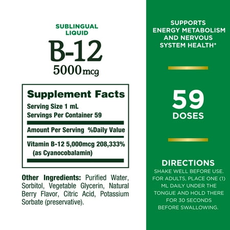 Nature's Bounty Vitamin B-Complex Liquid for Energy Metabolism, 59 Doses Beneficial for individuals who have difficulty swallowing pills Supports Energy Metabolism* 5 Key B Vitamins This liquid elixir supports energy metabolism and a healthy nervous system* vegetarian-friendly and gluten-free *These statements have not been evaluated by the Food and Drug Administration. This product is not intended to diagnose, treat, cure or prevent any disease.