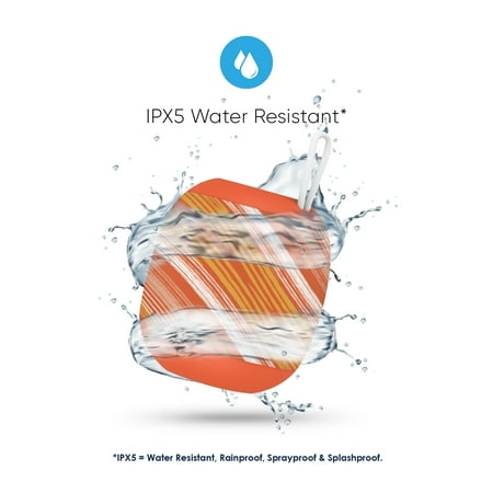 onn. Bluetooth barrel speaker with fun designs and colors 5W RMS output/20W peak output (4 x RMS) Wireless Bluetooth with up to 33 ft (10 m) range Stream your favorite music through your smart phone, tablet, or use the FM Radio feature Rock around the clock with up to 21 hours of consistent music play TWS sync mode to connect a 2nd speaker for stereo mode Our built-in long-life battery technology provides up to 21 hours of your favorite music, podcasts, audio book IPX5 water-resistant protects against splashes and liquids FM radio mode 3.5 mm AUX jack and memory card slot