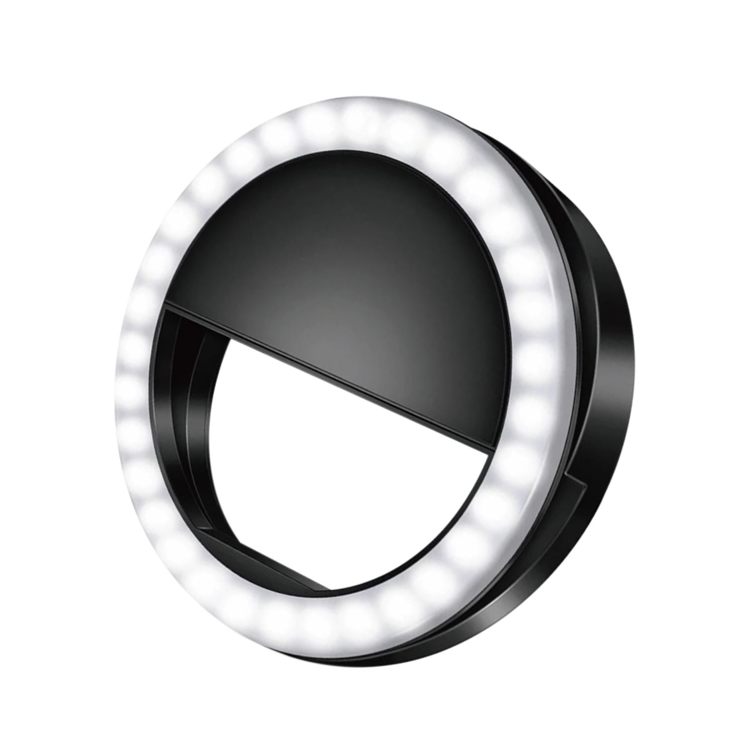Clip this 360 degree light onto your phone to take the perfect selfies! PRODUCT FEATURES 3 levels of brightness Self-timer Lightweight Makes a great gift! PRODUCT DETAILS Requires 2 AAA batteries (not included) Dimensions: 3.35 x 1.19 x 3.35 ABS, PC, PET, iron Wipe clean Imported