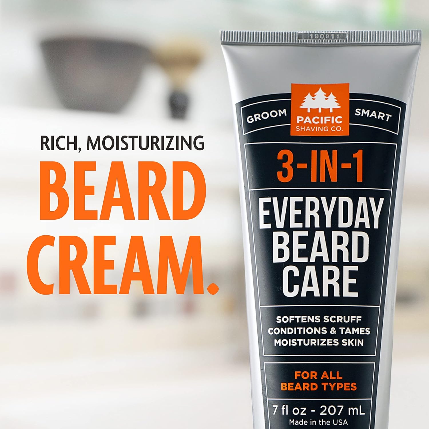 Pacific Shaving Company 3-in-1 Beard Care - Ultra-Concentrated Formula Softens Scruff, Conditions, Tames, and Moisturizes Skin for Any Beard Length - Clean Men's Grooming Products (7 Fl Oz)