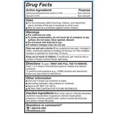 REFRESH OPTIVE Preservative-Free Lubricant Eye Drops contains not just one, but two active ingredients that help relieve mild symptoms of eye dryness including burning, irritation, and discomfort. The dual-action formula works fast by delivering soothing moisture that lubricates and hydrates. And, since REFRESH OPTIVE is preservative-free, it's great for sensitive eyes and can be used after LASIK or other eye surgeries. Follow your eye doctor's instructions if you are using REFRESH OPTIVE Preservative-Free after an eye surgery (e.g., LASIK) to relieve dryness and discomfort. REFRESH OPTIVE Preservative-Free Lubricant Eye Drops come in sterile, single-use vials you can take with you anywhere. Trust your eyes to REFRESH The #1 selling brand in preservative-free artificial tears.* (*REFRESH Family of Products, Ipsos Healthcare, 2021 REFRESH ECP Recommendation Survey.)