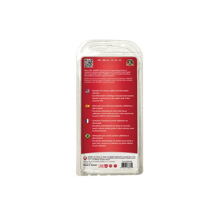 Suitable for utility and decorative stitches Use for elastic insertion and basic mending Wide needle slot allows for up to 7mm stitch width Genuine SINGER accessory in carded blister pack.