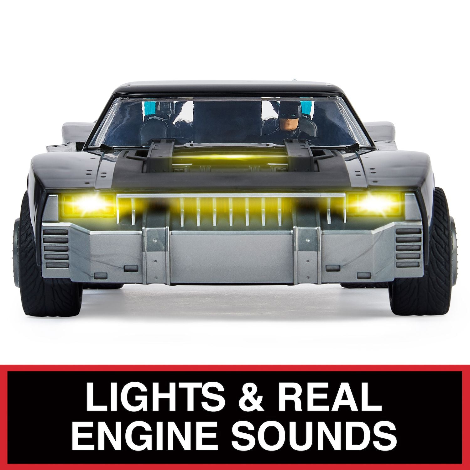 Speed into action with the Batman Batmobile featuring authentic movie-style sculpting, over 15 sounds effects, and LED lights that will bring your Batman adventures to life! PRODUCT FEATURES LIGHT UP BATMAN BATMOBILE: Keep the streets of Gotham City safe with the Batman Batmobile! This sleek Batman vehicle features LED engine lights, awesome headlights, and undercarriage residual glow! INCLUDES 4-INCH BATMAN FIGURE: Includes 4-inch Batman figure with cloth cape, detailed sculpting and authentic movie styling. With 11 points of articulation, it's easy to pose the Batman action figure into a variety of dynamic poses! SOUNDS AND AUTHENTIC MOVIE-STYLING: The detailed deco and movie-style sculpting brings the Batmobile to life. Push down on the engine to activate over 15 accurate engine sounds just like in the Batman Movie! BATMAN GIFTS FOR KIDS: Batman playsets are great Batman toys gift for kids. Batman superhero toys are the ultimate holiday and birthday gift for boys and girls. OFFICIAL THE BATMAN MOVIE COLLECTIBLE: Complete your Batman collection with Batman, Selina Kyle, and The Penguin figures (each sold separately)! WHAT'S INCLUDED Includes: 1 Vehicle, 1 Figure, 3 AAA Batteries (Included) PRODUCT DETAILS Imported Requires: 3 AAA batteries, included Model no. A3 Age: 4 years & up Plastic, electronics 11.81 H x 13.78 W x 7.087 D Wipe clean Gift Givers: This item ships in its original packaging. If intended as a gift, the packaging may reveal the contents.