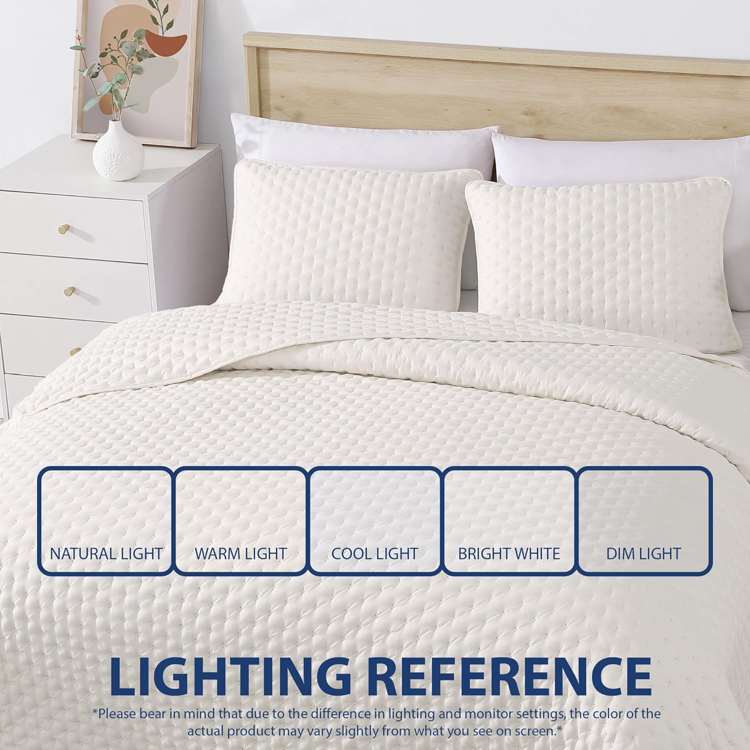 Ultrasonic Bubble Full/Queen 3PC Ultrasonic Microfiber Quatrefoil Quilt Set - Coconut Milk *Damaged Package*