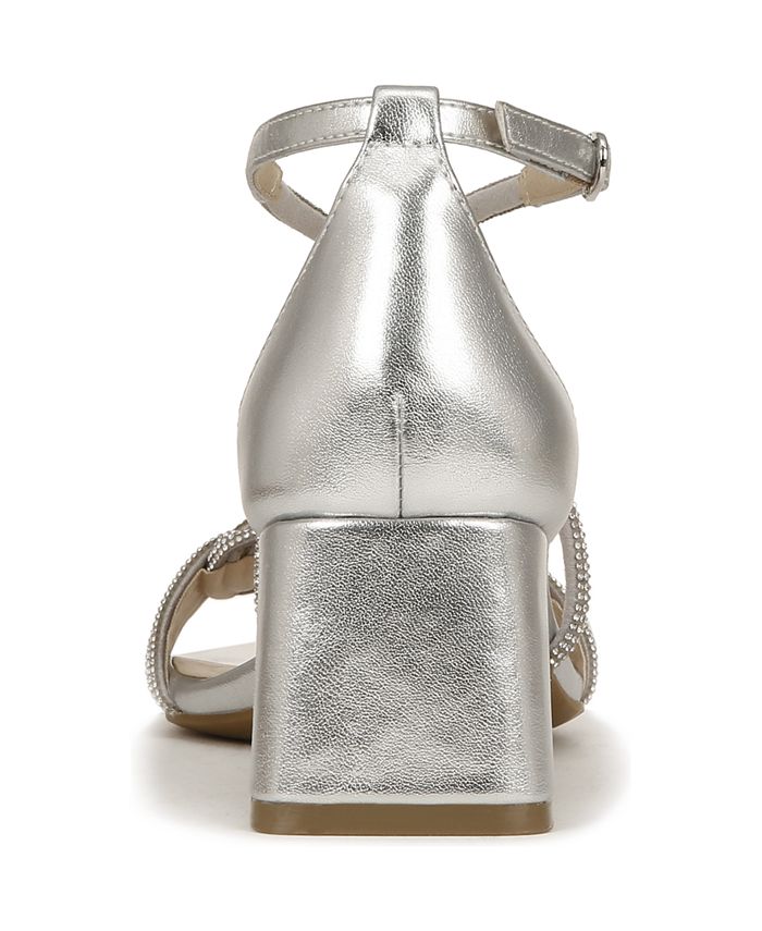 Sparkle and shine in these stunning dress sandals for women with soft, rhinestone-studded straps. Perfect for weddings and special occasions. Faux leather and rhinestone straps with an open square toe, cupped heel, adjustable buckle with built-in stretch, and stunning interwoven rhinestone design at the toe. Soft System comfort package provides all-day support, flex, and cushioning. Fab Flex tech with a super flexible, ultra-padded platform heel for ultimate comfort. Traction sole for extra stability. Just Right Height 2-inch angled block heel. 2 angled block heel. Buckle Closure. Synthetic upper, Synthetic lining, Synthetic sole. Spot clean. Imported