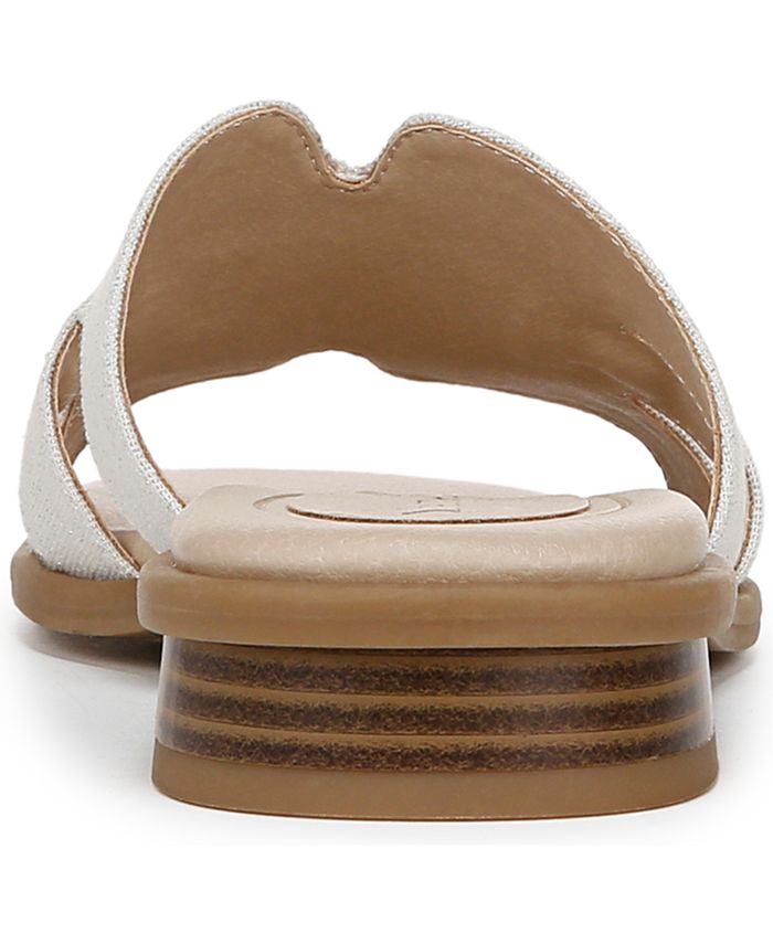 Perfect for travel or every day, these slide sandals are equally versatile, casual, and chic. Fabric fabric upper with an open square toe, slip-on fit, and metallic ornament detail. Trusted Soft System comfort technology for unmatched cushion, support, and flexibility in every pair. Traction sole for extra stability. Just Right Height 1-inch heel. 1 heel. Slip on. Synthetic, Fabric or Synthetic/Fabric upper, Synthetic lining, Synthetic sole. Professionally Clean. Imported