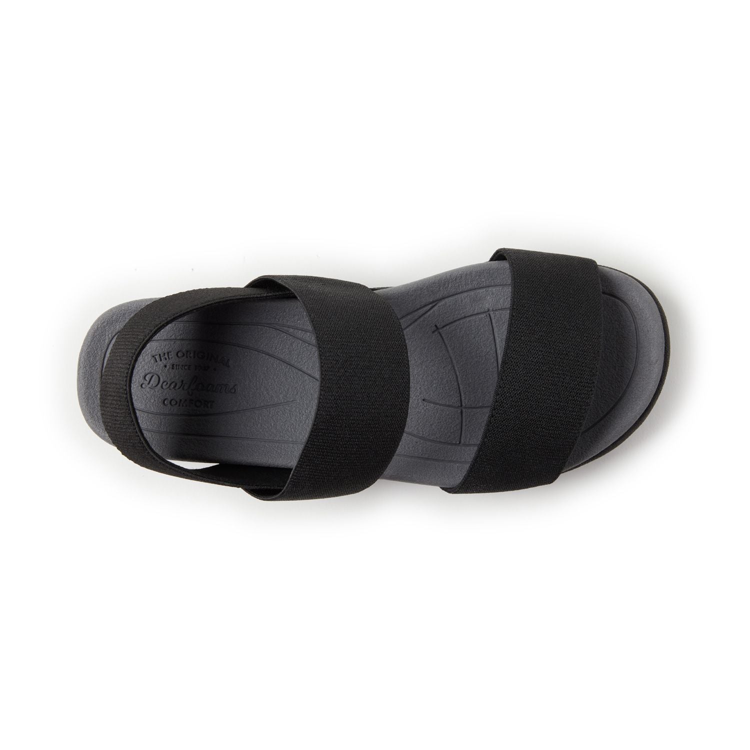 Step into style and comfort with these Dearfoams Sloane low foam back strap women's sandals. FEATURES Elastic fabric strap hugs your foot for the perfect fit Molded rubber outsole provides durability and stability DETAILS Elastic upper Synthetic lining TPR outsole Open toe Slip-on Foam footbed Non-skid outsole Machine wash Imported
