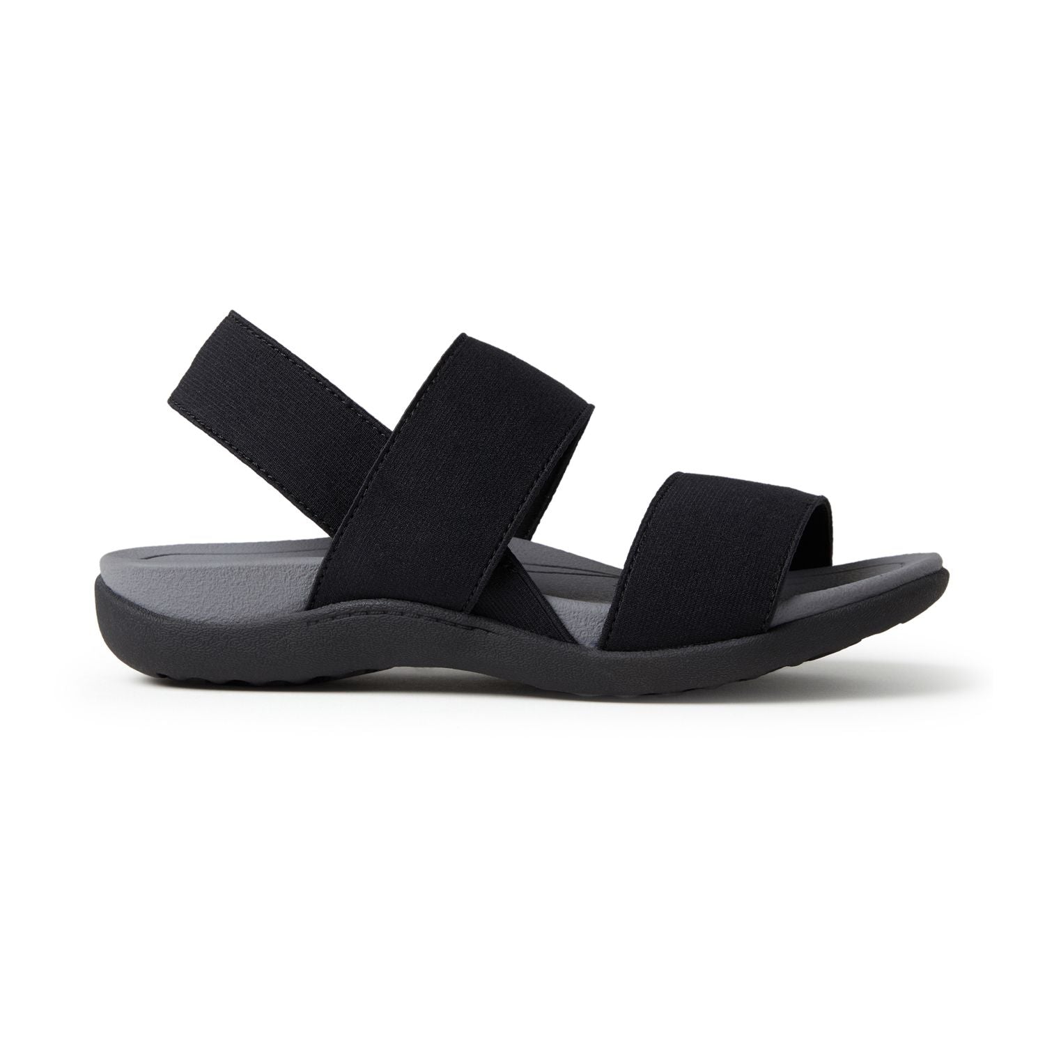 Step into style and comfort with these Dearfoams Sloane low foam back strap women's sandals. FEATURES Elastic fabric strap hugs your foot for the perfect fit Molded rubber outsole provides durability and stability DETAILS Elastic upper Synthetic lining TPR outsole Open toe Slip-on Foam footbed Non-skid outsole Machine wash Imported