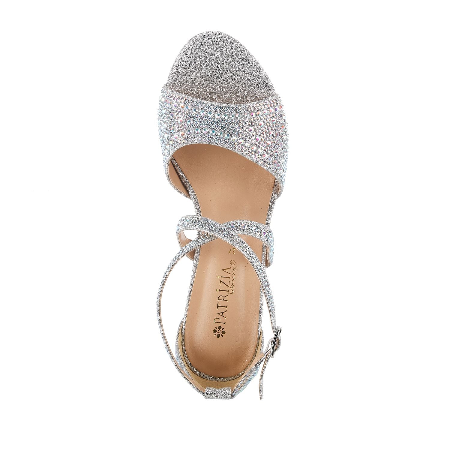 Step out in a classy look wearing these Patrizia Delamore women's heeled dress sandals. SHOE FEATURES Beautiful tonal crystals Crisscross straps Comfort block heel SHOE CONSTRUCTION Synthetic upper Polyester lining Rubber outsole SHOE DETAILS Open toe Buckle closure Padded footbed 2.25-in. heel 0.4-in. platform