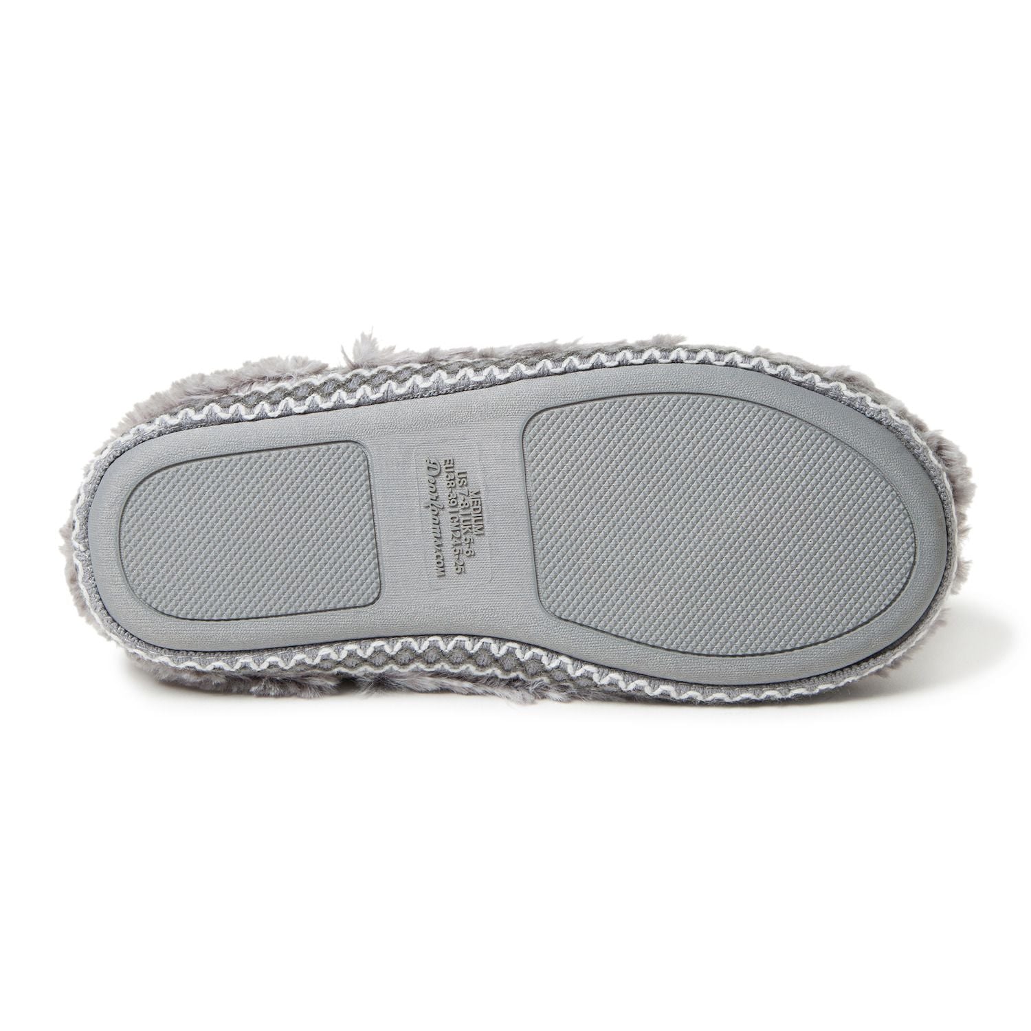 Keep your feet cozy and warm from morning to night wearing these women's Dearfoams slippers. SHOE FEATURES Fold-down slouch-cuffs can be worn up or down SHOE CONSTRUCTION Polyester faux fur upper & cuff Polyester fleece lining Thermoplastic rubber outsole SHOE DETAILS Round toe Slip-on Memory foam padded footbed Indoor/outdoor textured soles Machine wash Imported