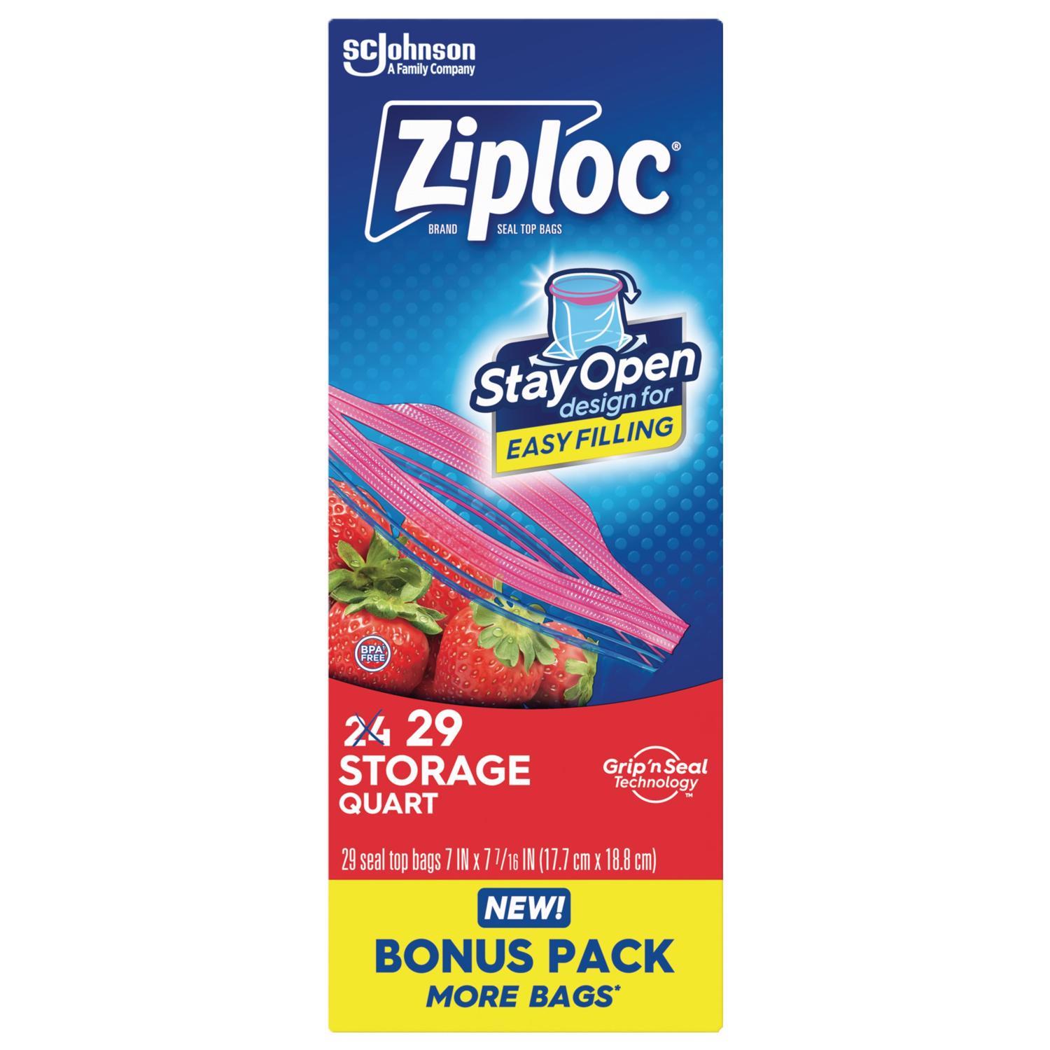 Ziploc Grip 'n Seal Technology 1 qt Clear Zipper Storage Bag 29 pk *Damaged Box*